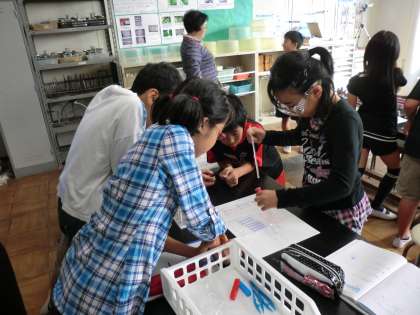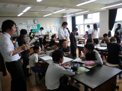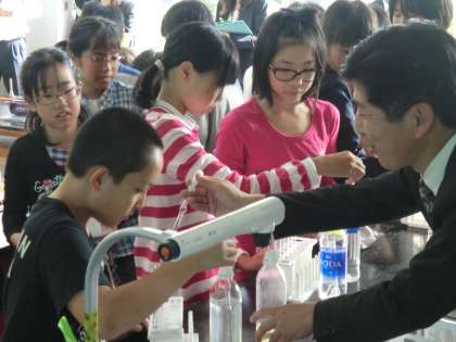 小学校6年生理科「水溶液の性質」の授業が行われ、市内から11名の2・3年目の小学校教諭が参加しました。授業の前に、安全に実験を行うための工夫や児童が興味関心を高めるための工夫など、若手教師に学んでほしい点が、授業者から示されました。研究協議では、質問や意見などが活発に出され、有意義な研修になりました。