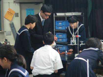 大和中学校で、1年生理科の研究授業がありました。パルミチン酸が融解していく現象を観察し、物質の状態変化の規則性を見出すための実験が行われました。生徒は協力して実験に取り組み、実験結果を的確に表にまとめることができました。落ち着いた雰囲気の中で、生徒は真剣に取り組んでいました。