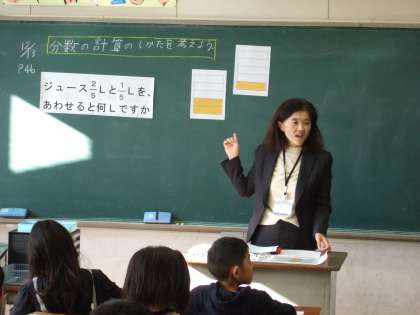 12月13日(火)神山小学校で、3年算数、4年算数の研究授業がありました。3年算数では、子どもたちは、初めて学ぶ分数のたし算とひき算の方法を考えて、計算練習をしました。また、4年算数は、2÷4の計算の方法を、前の時間に学習したことを使って説明し、その後練習を行った授業でした。どちらも子どもたちの学ぼうとする気持ちに応える授業でした。
