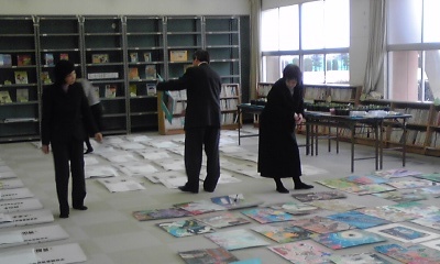 葉栗北小学校で、「平成23年度 第23回読書感想画コンクール一宮地区審査会」が行われました。小学校全校、中学校12校から出品され、どの作品も力作ぞろいでした。審査委員の学校図書館部員、図工・美術教科等指導員が十分に協議を重ね、審査を行いました。上位入賞候補作品は、尾張ブロック審査会に提出されます。