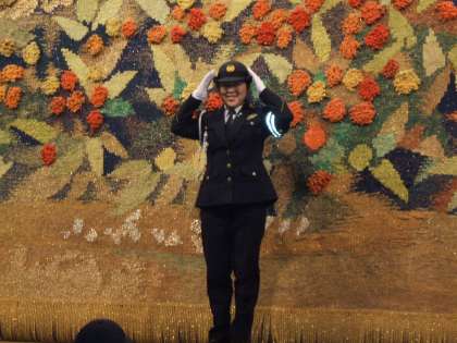来賓の愛知県一宮警察署交通課の方からは、不審者対策や交通安全についてのお話があり、子どもたちは熱心に話を聞くことができました。