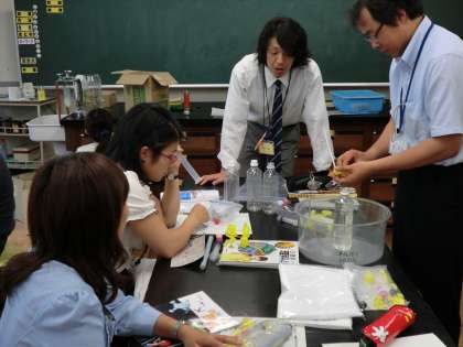 本年度(2年目)も、理数教育における指導力向上を図ることを目的として「理数系教員(CST)養成拠点構築事業(独立行政法人 科学技術振興機構 2年指定)」に取り組みます。本事業において、一宮市の理数教育において中核的な役割を担う教員を拠点校(貴船小、大和西小、北部中、大和中)において、養成していきます。※写真は、昨年度のものです。