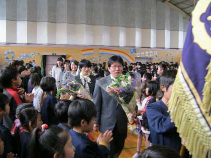 子どもたちは、転任された先生や退職された先生と久しぶりに顔を合わせ、最後の話を真剣に聞くことができました。また、全ての学校で、お世話になった先生方との別れを惜しむ子どもたちの姿が見られました。※写真は瀬部小学校の退任式の様子です。