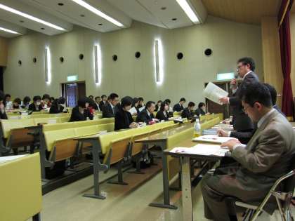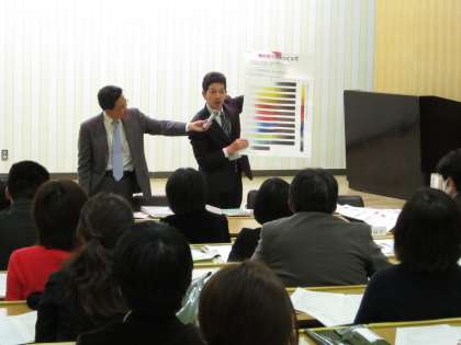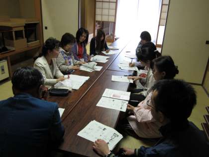毎年、夏には一宮市博物館と三岸節子記念美術館に優秀作品を展示し、たくさんの方に鑑賞していただいています。今日は、市内全小中学校の図工美術主任や幼稚園・保育園の指導者に写生大会実施にむけての説明を行いました。写生大会運営委員長からは「子どもたちのどんな力を伸ばしたいのか指導者はしっかりねらいを持ってのぞんでほしい」と話がありました。説明の後には「幼稚園・保育園」「小学校」「中学校」の3つの部会に分かれて、指導法の研修も行いました。