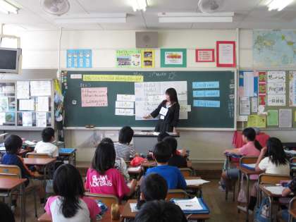 午後は、大志小学校では3年英語活動、木曽川西小学校では、1年道徳、4年算数、5年英語活動の授業を通して、よりより授業のために研究を行いました。