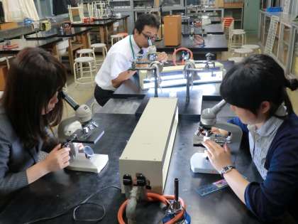 中学校3年生で理科を担当している先生方を対象に講座(理科実践講座としては7回目)を開催しました。前半は、受講者が作成した「テストや課題」を持ち寄り、作成の意図や事後の指導法について協議しました。後半は、指導員からペルチェ素子やファストプランツ等の新教材の実験・観察について学びました。研修終了後には、受講者同士で「花粉管の観察」の予備実験を行いました。