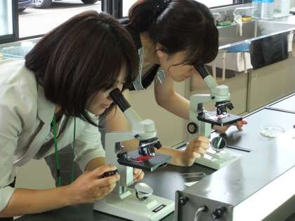 小学校3・4年生で理科を担当している教員を対象に講座を開催しました。前半は、顕微鏡の扱い方について説明があり、その後、水中の微小生物を観察し、スケッチをしました。教員でも実際にスケッチをしてみるとなかなか難しく、指導する際には観察させたいものに着目させ、目的のものをはっきりかかせることが大切であることを学びました。後半は、各学年に分かれて、進度や評価、実験のやり方などについて情報交換をしました。