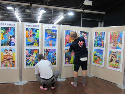 7月24日 「一宮七夕まつり宣伝ポスターコンクール展」の準備を行いました