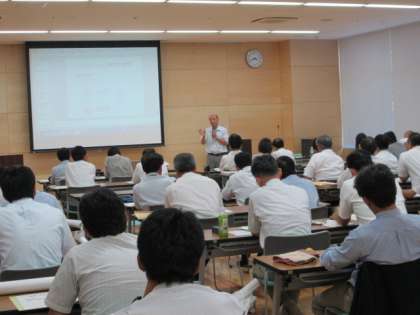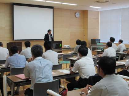一宮市総合体育館多目的室で第3回教務主任者会議を行いました。市内小中学校の教務主任が集まり、シミュレーション授業の映像をもとに、授業力向上にむけての研修を行いました。シミュレーション授業の進め方について協議をした後、講師から効果的な進め方についての指導をうけました。