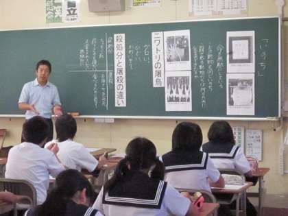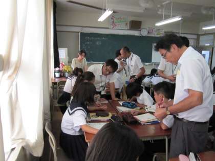 午後は2つの学級で研究授業が行われました。2年2組では道徳の授業で、「いのち」ついて考えました。1年5組では理科の授業で、溶液について粒子モデルを使って話し合いました。