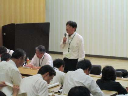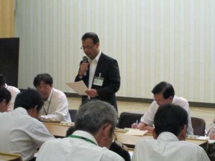 一宮地域文化広場大研修室に市内小中学校の教頭が集まり、10月教頭会議を行いました。教育長からは、学校ホームページを充実させて、学校の発信能力をいっそう高めていくよう指導がありました。また、ホームページに関しては学校教育課長からも、内容が充実している学校のホームページも参考にして、自校の充実を図るように指導がありました。