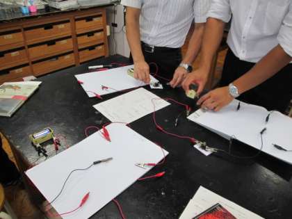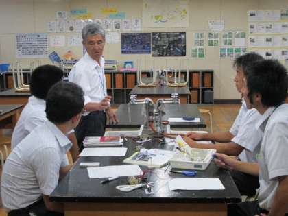 10月11日 理科実践講座(23)「電流の学習の進め方」を開催しました 公開日 2013/10/14 更新日 2013/10/14 研修会 中学校2年生の理科を担当している教員を対象に講座を開催しました。前半は、動物の学習で使用した教材をお互いに紹介し、効果的な指導法について話し合いました。後半は電流の学習の進め方について情報交換し、指導者から授業の具体的な展開について説明をうけました。