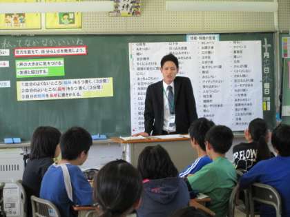 開明小学校では、「正しく(知)、明るく(徳)、たくましい(体)児童の育成」にむけて、どの学年も落ち着いて授業に取り組んでいました。午後は、6年生で学級活動の研究授業が行われ、研究協議会では視点に沿って、熱心に協議が行われました。
