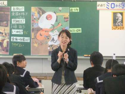 10月24日 尾西第一中学校を訪問しました 公開日 2013/10/27 更新日 2013/10/27 研修会 本日訪問した尾西第一中学校では「聡明,友愛,健康」を教育目標に、落ち着いた学習環境の中で、生徒が真剣に学習や運動に取り組んでいました。午後には、1年で道徳、2年で美術、3年で理科の研究授業が実施され、その後の研究協議会では視点に添った話し合いが行われました。