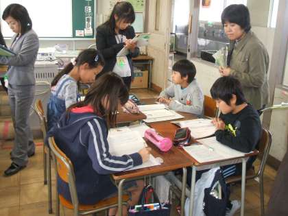 大和南小学校では、子どもたちの礼儀正しいあいさつ、明るい笑顔、そして規律ある落ち着いた授業態度がとても印象的でした。また、廊下や特別教室などに多くの児童の作品や活動記録の掲示、すべてのトイレに花が生けられ潤いのある環境中で子どもたちは学校生活を送っていました。授業では、ペア対話やグループでの話し合い活動が活発に行われ、学習内容の理解が深まるよう工夫がされていました。午後には国語の研究授業が行われ、よりよい授業をめざして活発な研究協議が行われました。