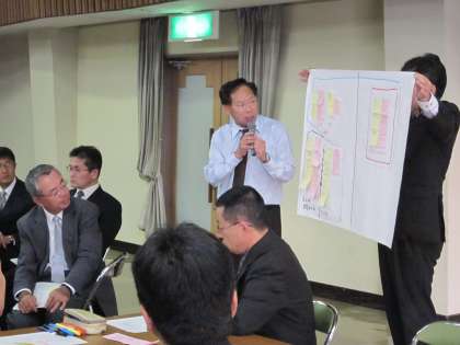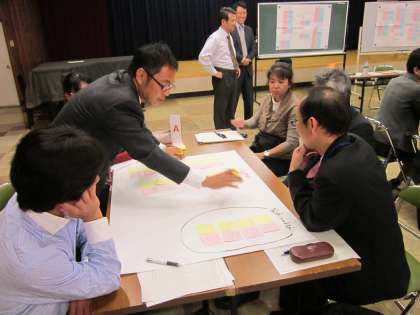 尾西生涯学習センターで、講師の先生をお招きし、特別支援教育コーディネーター会議を開催しました。講師の先生からお話を聞きながら、模擬事例について個々で課題と支援策について考え、グループ内で発表しました。発表された意見を種別にわけた後、それぞれの課題にテーマをつけて、どの支援策に力を入れて取り組むべきなのかをまとめました。今回学んだインシデント・プロセス法を使った会議の進め方を各校のケース会議でも実践していく予定です。