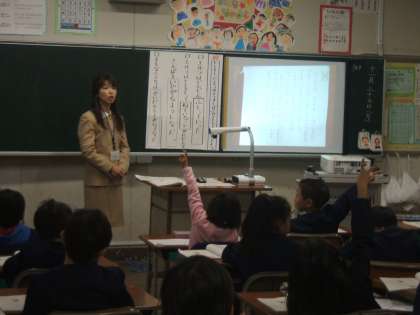 11月25日 貴船小学校を訪問しました 公開日 2013/11/27 更新日 2013/11/27 お知らせ 貴船小学校では、「キラリ! かがやけ きふねっ子」の合言葉の下、子どもたちの作品が数多く掲示される、温かい雰囲気の中で教育活動が進められていました。授業では、学習内容が理解しやすいよう、プロジェクターや自作の学習資料が数多く使われていました。午後は1年生の国語の授業、4年生の算数の授業が行われました。その後の研究協議会では、ペア活動などについて活発な意見交換が行われました。