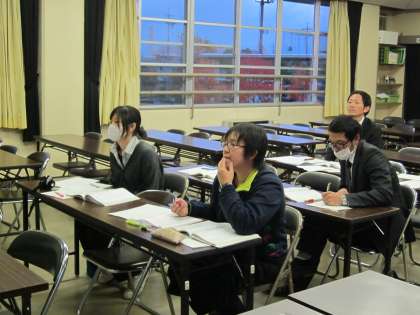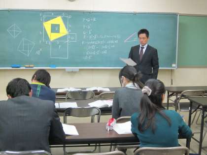 前半は、期末テスト後から冬休みにかけて、数学の力を伸ばしていくための取り組みについて話し合いました。後半は、これから授業を進めていく「三平方の定理」について、シミュレーション授業を行いながら単元の目標や指導のポイントについて学び、効果的な授業の進め方について確認しました。