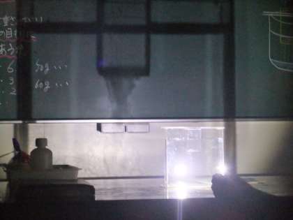 小学校5・6年生で理科を担当している教員を対象に講座を開催しました。前半は6年「てこのはたらき」の単元の導入で用いる大型てこの紹介や、てこを用いてつりあいのきまりを見いだす実験方法について指導員から説明がありました。また、5年「もののとけ方」の単元でシュリーレン現象を投影して見せる方法について学びました。後半は、ワークシートのつくり方や理科ノートの使い方について話し合いました。