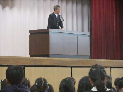 愛知県教育委員会では今年度の重点テーマを「家庭・地域・学校の連携で『いじめ・暴力』から子どもを守ろう」と定め、教育キャンペーンを展開しています。本日、神山小学校で教育キャンペーン活動の一環として「いじめ」がテーマの人権講話を中心とした学校集会が行われ、愛知県教育委員長が参観されました。学校長からは、世界人権宣言の歴史に触れながら、「互いの違いを認めること」「体や心を傷つける暴力をなくすこと」「いじめを絶対に許さないこと」などについて話がありました。子どもたちは集会後、各教室に戻り、いじめをなくすために自分へのメッセージを書きました。