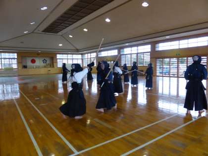 市内中学校の部活動の様子です。寒さに負けず、元気のよい声が武道場に響いています。