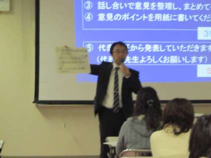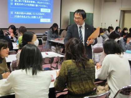 12月13日 第3回特別支援協力員研修会を実施しました 公開日 2013/12/17 更新日 2013/12/17 研修会 一宮市内の全小学校と一部の中学校に配置されている特別支援協力員の研修会を木曽川体育館会議室で行いました。発達障がいに関する2つの事例について、原因と支援の方法をグループで話し合って考えました。講師からは発達障がいへの理解を深める話を聞き、効果的な支援策について学びました。