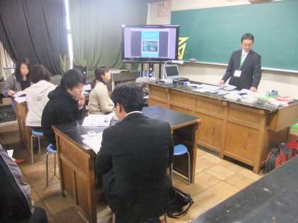 中学校3年生で理科を担当している教員を対象に講座を開催しました。前半は、「地球の明るい未来のために」の単元で取り上げられている放射線測定器の使い方について、指導員から説明を受けました。また、義務教育最後のこの単元の進め方について話し合いました。後半は、iテストの分析と情報交換を行いました。