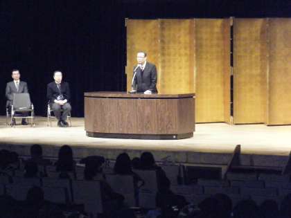 昨日に引き続き、来年度、小学校へ入学する子どもたちを対象に、「第58回 新入学を祝う よい子のつどい」が一宮市民会館で開催されました。一宮警察署の方から交通安全についての話を聞いたり、アニメ映像で小学校の生活について学んだりしました。子どもたちの元気な声が会場に響きわたりました。