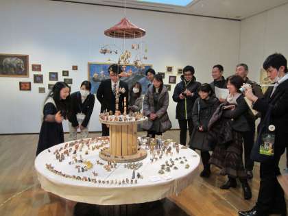 一宮市三岸節子記念美術館で美術教育の自主研修会が行われ、市内の小中学校教員が参加しました。研修会では、企画展の作家はしもとみお氏に話を聞きながら、作品を鑑賞しました。作家の造形活動に対する情熱に触れ、表現する喜びとは何かをあらためて考える機会となりました