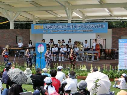 ゴールデンウィーク後半が始まりました。今日から、国営木曽三川公園138タワーパークでいちのみやリバーサイドフェスティバルが開催されています。今日は、138タワーパーク水辺広場において、第19回一宮市小学生一輪車競技大会が行われました。また、野外ステージでは、西成中学校、南部中学校、尾西第三中学校、北部中学校、中部中学校のブラスバンド部の生徒たちによる演奏が行われました 2014いちのみやリバーサードフェスティバルは、3日〜5日まで開催されています。今年のテーマは、『感じよう木曽川の恵み』です。木曽川の貴重な自然や水辺空間がある138タワーパークにおいて、木曽川水系の歴史・文化、木曽川沿川市町村との交流を踏まえ、木曽川の恩恵を再確認するため、日頃より「木曽川」や「水」に関連した活動団体、行政機関、企業の皆様に出展していただき、利水・治水・親水に関連した展示や体験などを行いってます。ぜひ、家族で楽しいひと時をお過ごしください
