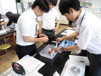 小学校で5・6年生の理科を担当している教員を対象に講座(理科実践講座としては4回目)を開催しました。前半は、ヨウ素デンプン反応の色変化をはっきりさせるためにはヨウ素液の濃度に気をつけなければならないことを、実習を通して学びました。後半は、授業の進め方について研修を行いました。指導員からは、1時間、1時間の授業を個別にとらえるのではなく、単元を貫く軸を意識して単元構想を考え、授業を行うようにするとよいという説明がありました。