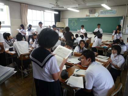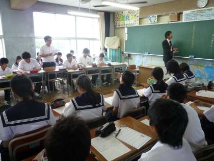 本日訪問した今伊勢中学校では、「豊かな心をもち、たくましく生きる生徒」の育成をめざし、緑あふれる学校の中、活発な教育活動が行われていました。午後は、1年保健体育、2年道徳、3年社会の研究授業が行われました。どの学級も、自主的な生徒たちの活動がありました。その後の研究協議では、より理解を深めるための指導方法について話し合いました。