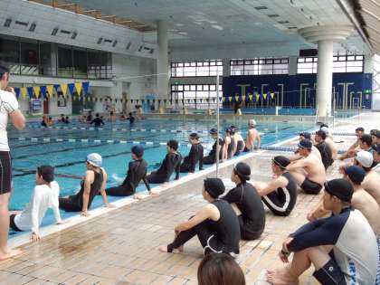 参加者は子どもたちの発達段階にあわせた指導法について、真剣に学んでいました。この研修で学んだことを、各学校での水泳指導に生かしてほしいと思います。