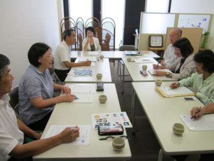 本市には、4つの教育支援センターがあり、何らかの心理的理由によって登校できない子どもたちの学校復帰を目指して、教育相談や適応指導などを行っています。本日は、8名の指導員が集まり、事例研究と情報交換を行いました。一宮市主席スクールカウンセラーの助言を受け、活発な話し合いが行われました。
