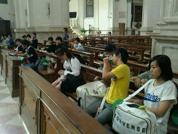 ドゥオーモ教会を見学しました。中に入れると、荘厳な雰囲気に、全員が無言になりました。