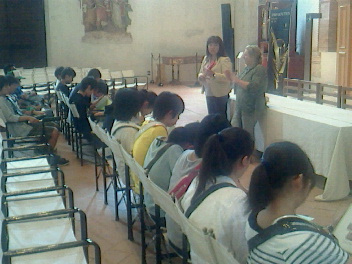 博物館を見学しました。フレスコ画の展示が見事でした。みんなガイドの話をメモを取りながら聞いていました。