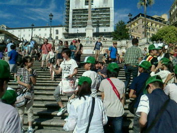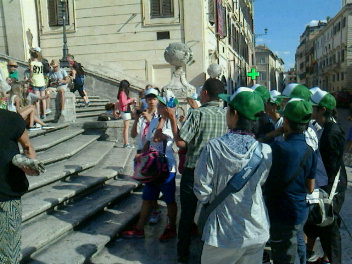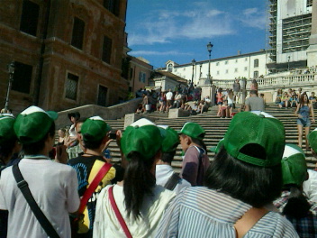 スペイン広場に到着しました。ここも一部工事中でした。派遣生徒たちは、思い思いに階段で記念撮影をしていました。