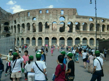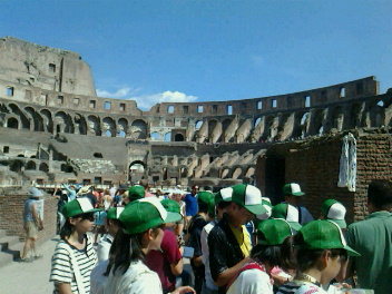 8月8日一宮市中学生海外派遣「コロッセオ1」 公開日 2014/08/08 更新日 2014/08/08 いちのみや夢人材育成事業 現地時間 8月7日 15:10 コロッセオに到着しました。ここも一部外壁工事が行われていましたが、堂々とした存在感ある佇まいに圧倒されました。