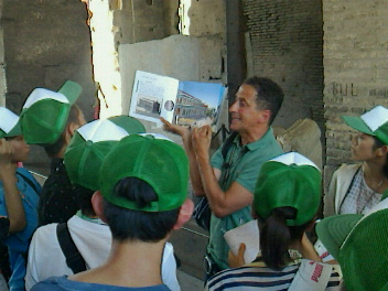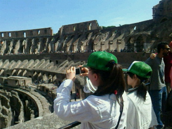 8月8日一宮市中学生海外派遣「コロッセオ2」 公開日 2014/08/08 更新日 2014/08/08 いちのみや夢人材育成事業 現地時間 8月7日 15:40 コロッセオの内部に入り、見学しました。元気でおもしろいガイドさんの解説を熱心にきき、メモを取っていました。