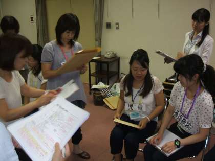 一宮市木曽川体育館において、第3回養護教諭研究会が行なわれました。今回は、「養護教諭のフィジカルアセスメント能力の向上をめざして」を研究協議のテーマとし、いくつかの症例に対して、アセスメントのロールプレイをグループ毎に行いました。その後、適切なアセスメントができたかどうかの話し合いをグループで行ない、全体発表(シェアリング)を行いました。最後に、尾張教育事務所の指導主事より、本日の研究協議に対する講評、養護教諭の職務の説明等をしていただきました。