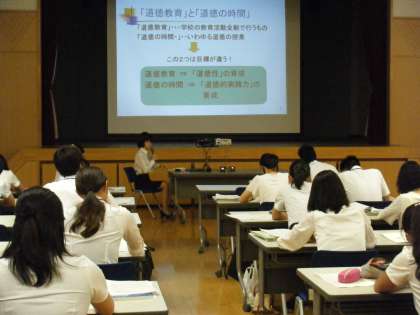 8月20日 第6回初任者研修会を行いました 公開日 2014/08/20 更新日 2014/08/20 研修会 小学校に勤務する初任者を対象に、尾西生涯学習センターで「道徳指導」について研修会を行いました。午前中は道徳の授業の進め方の基本形を学び、午後からは学年ごとのグループに分かれ、拠点校指導教員の指導を受けながら作成した指導案をもとに、研究協議を行いました。