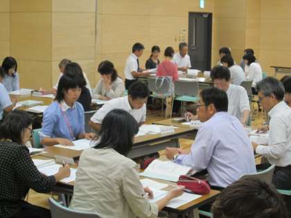 一宮市総合体育館で、第2回不登校対策主任者会を開催しました。グループに分かれて事例研究を行いました。協議の視点を定め、どのグループの先生方も、活発に意見を出し合い、児童生徒の理解のための力量向上に努めました。また、一宮市主席スクールカウンセラーや不登校対策推進委員会委員、教育支援センター指導員も討議に加わり、助言を行いました。