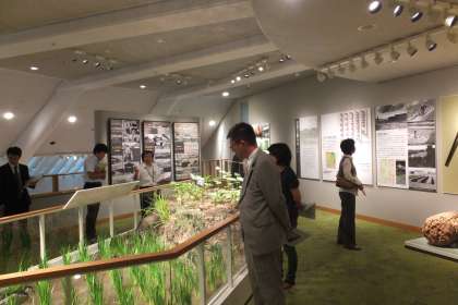 一宮市では社会科の授業の一環として、小学校3年生を対象に一宮市博物館の見学を実施しています。本日は3学期に実施される見学に向けて、学芸員の方にリニューアルされた博物館の展示物についての説明をしていただきました。その後、子どもたちに特に注目してほしい展示物や見学のさせ方などについて話し合いを行いました。