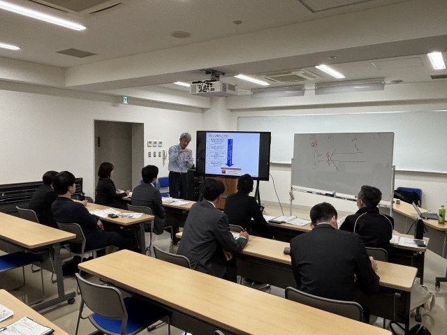 当日は、至学館大学の山田誠司先生を講師にお迎えし、「言語活動を充実させるための授業づくり~UNIT ACTIVITYを充実させるための手だて~」をテーマにご講義をいただきました。研修では、「言語活動を通して、コミュニケーションを図る資質・能力を育成する」という学習指導要領の目標に基づき、日々の授業で「単元を通じて何を学ばせればよいのか」、そして生徒の主体的な学びを引き出す「言語活動」とは何かについて、理論と実践の両面から深く学びました。本研修での学びが、今後の先生方の授業づくりに生かされることを心より願っております。次回の研修へのご参加も、心よりお待ちしております。